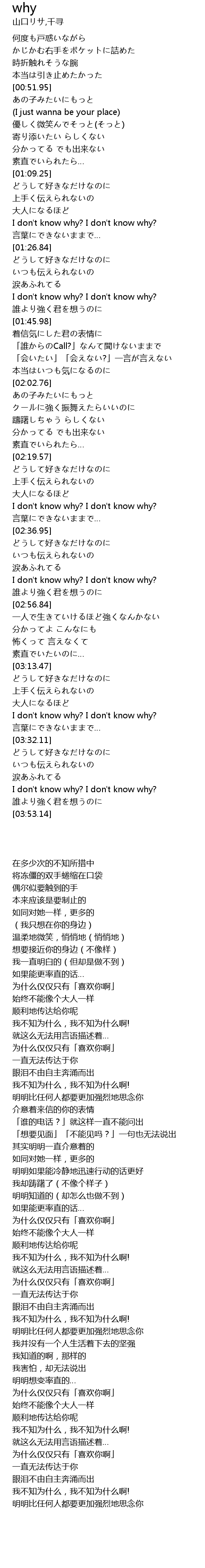| [01:19.46] | I don' t know why? I don' t know why? |