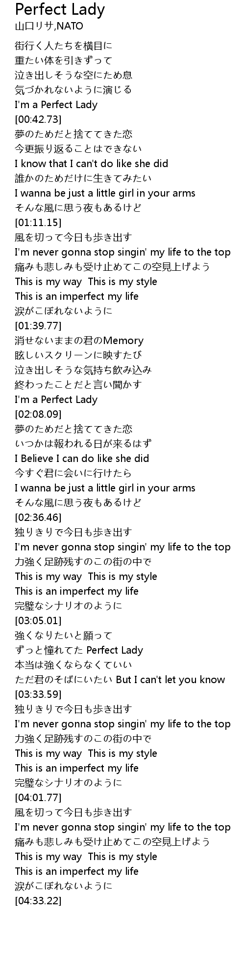 | [03:12.76] | ずっと憧れてた Perfect Lady |