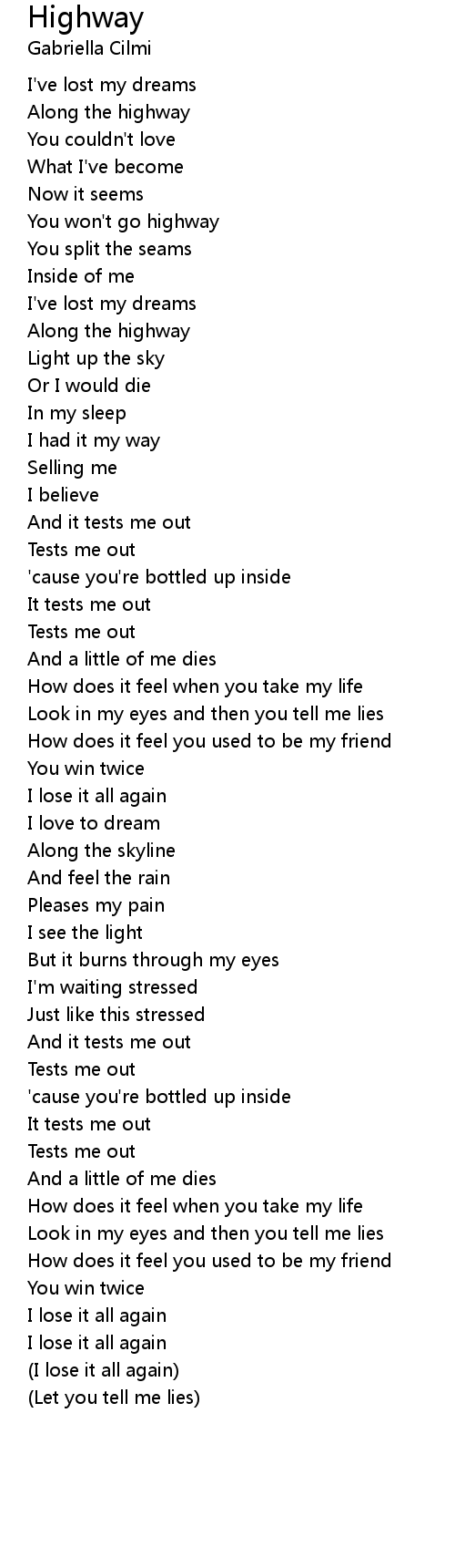 You won't go highway |