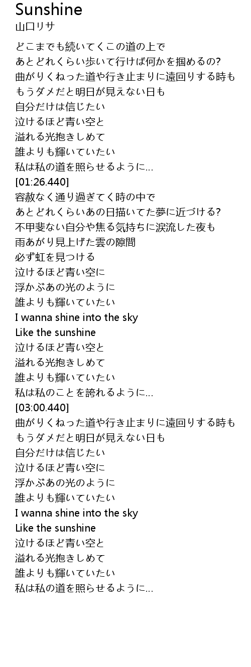 | [00:22.060] | どこまでも続いてくこの道の上で |