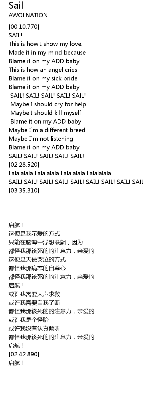 Sail Lyrics