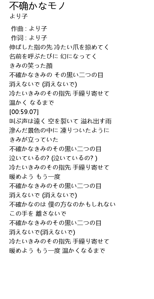 | [02:15.46] | 不確かなのは 僕の方なのかもしれない |