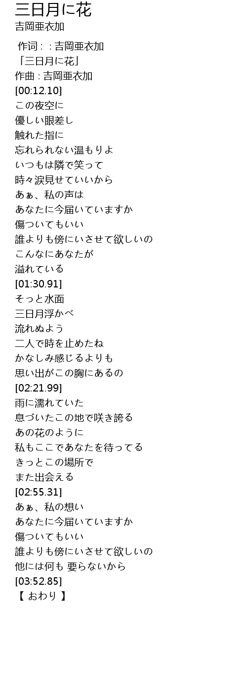 | [00:01.10] | 「三日月に花」 |