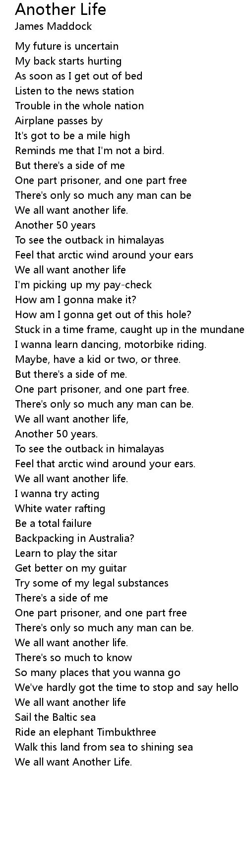 We all want another life, |