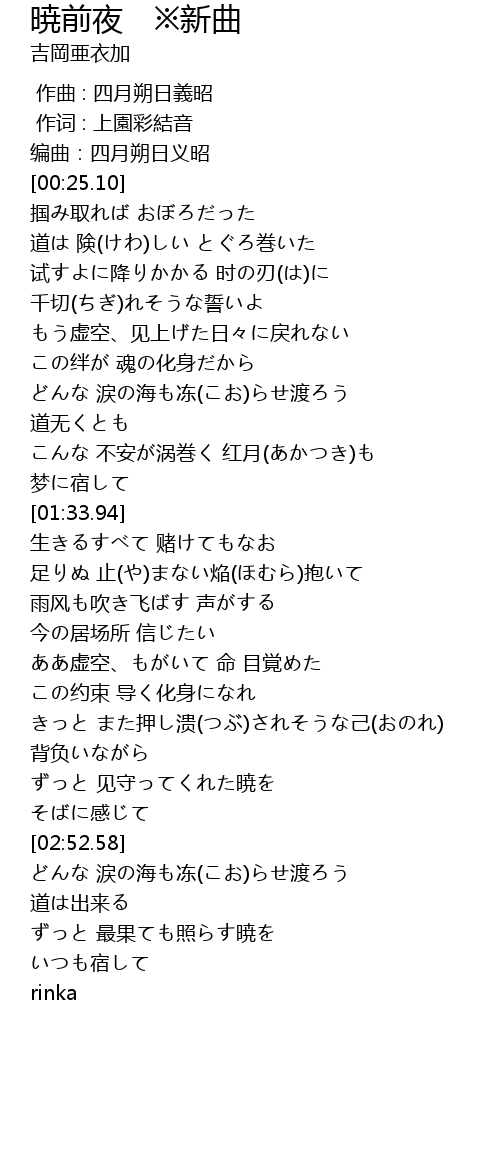 | [03:34.91] | ずっと 最果ても照らす暁を |