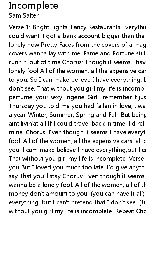 Incomplete Lyrics