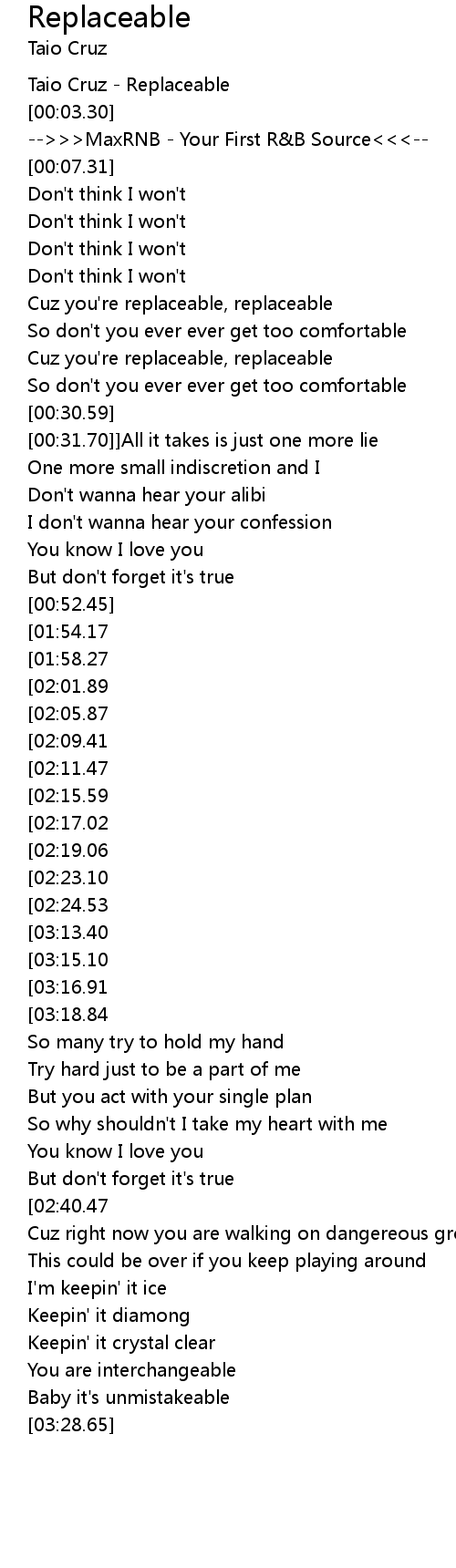 | [00:15.48] | Cuz you're replaceable, replaceable |