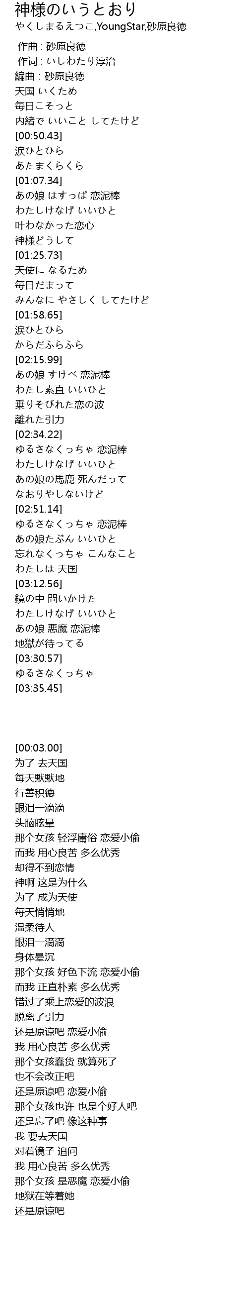 | [03:09.05] | わたしは 天国 |