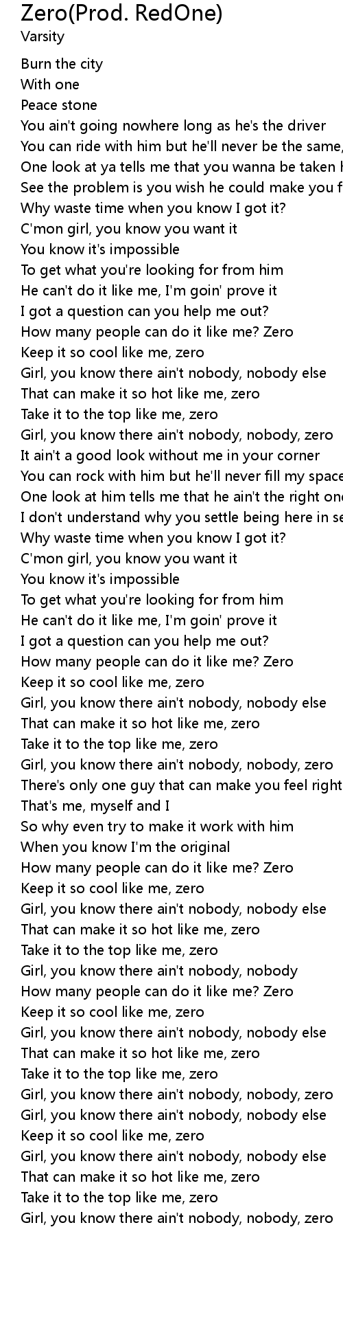 | Girl, you know there ain't nobody, nobody, zero | |