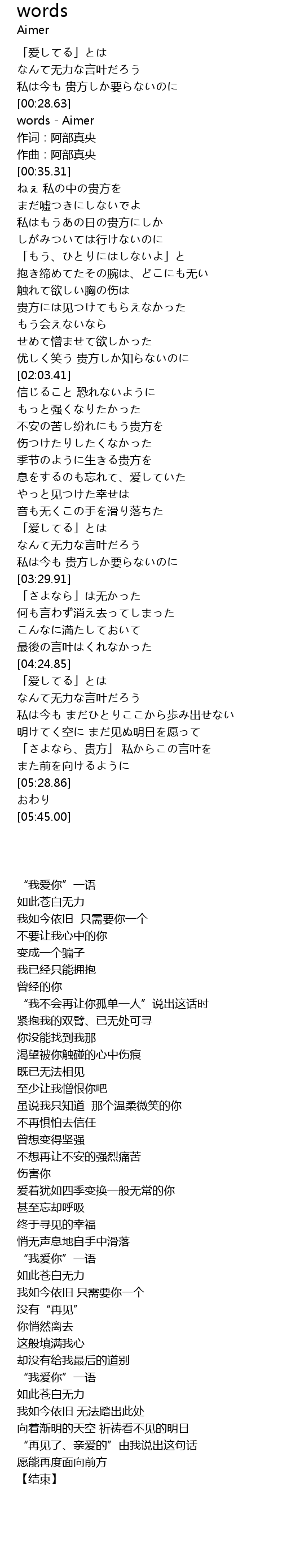| [00:40.81] | ねぇ 私の中の贵方を |