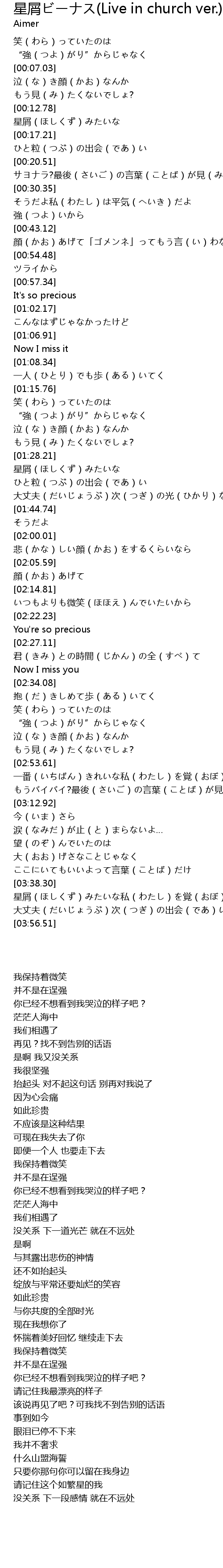| [03:39.62] | 星屑(ほしくず)みたいな私(わたし)を覚(おぼ)えてて |