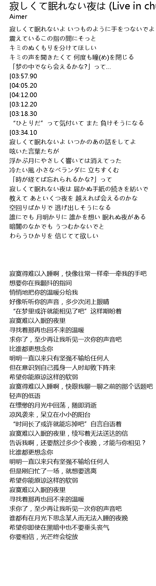 | [00:55.50][03:57.90] | 寂しくて眠れない夜は |
