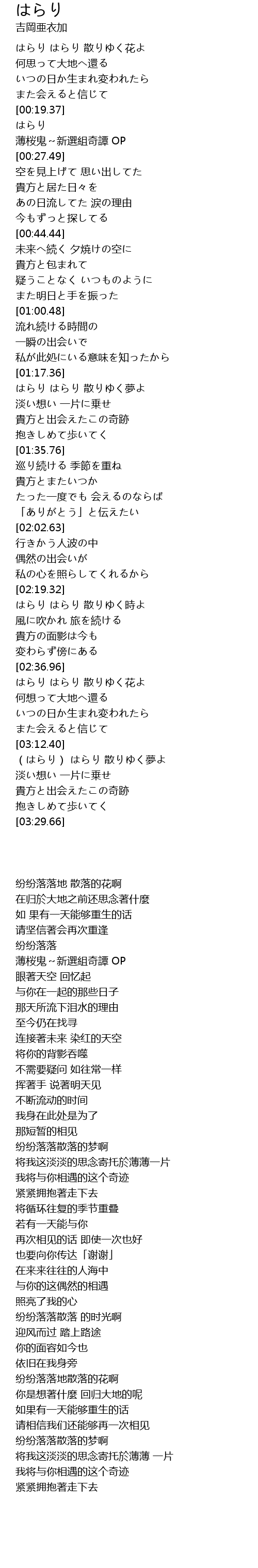 | [02:20.79] | はらり はらり 散りゆく時よ |