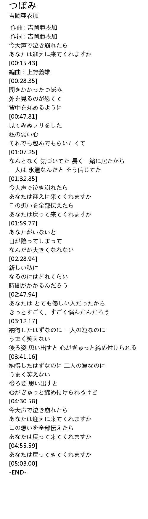 | [00:00.21] | 作词 : 吉岡亜衣加 |