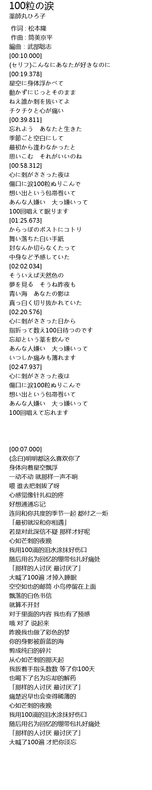 | [01:03.630] | 傷口に涙100粒ぬりこんで |