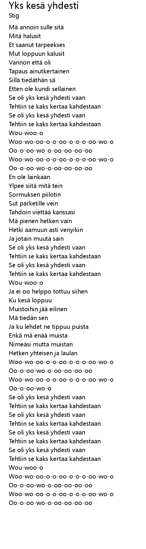 | [02:40.23] | Se oli yks kesä yhdesti vaan |