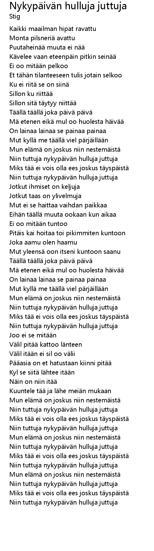 | [02:33.68] | Niin tuttuja nykyp iv n hulluja juttuja |