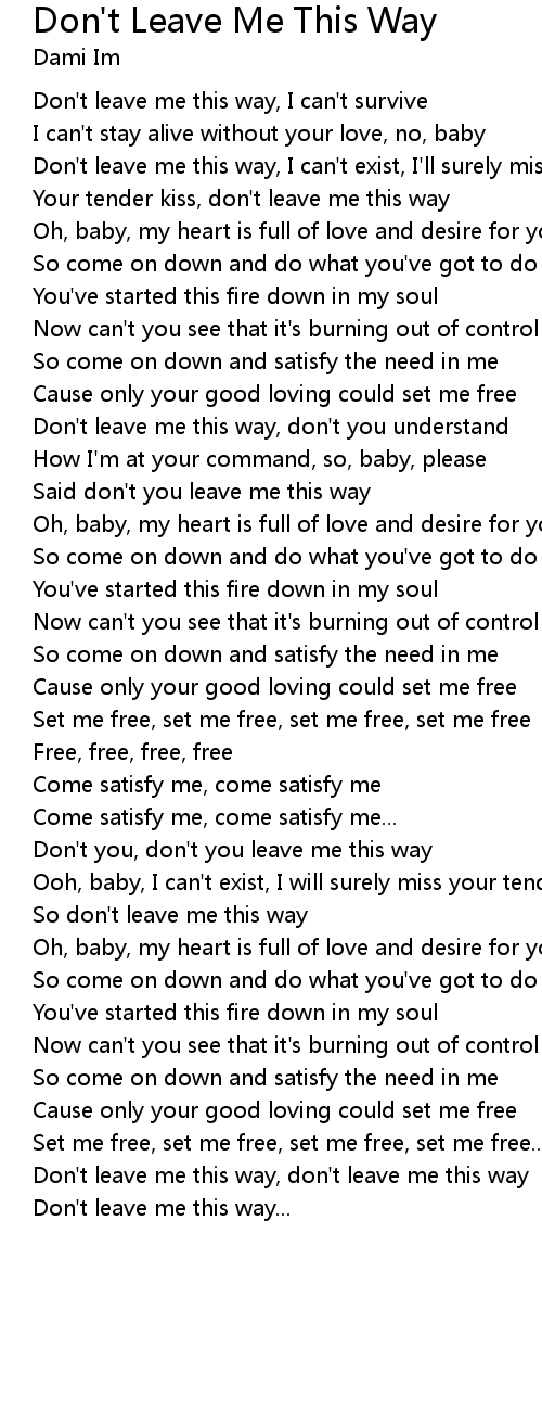 | Don't leave me this way, I can't exist, I'll surely miss | |