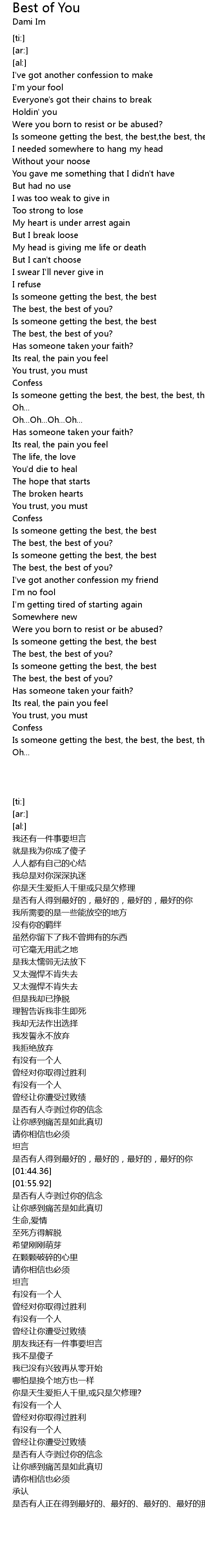 | [01:37.13] | Is someone getting the best, the best, the best, the best of you? |