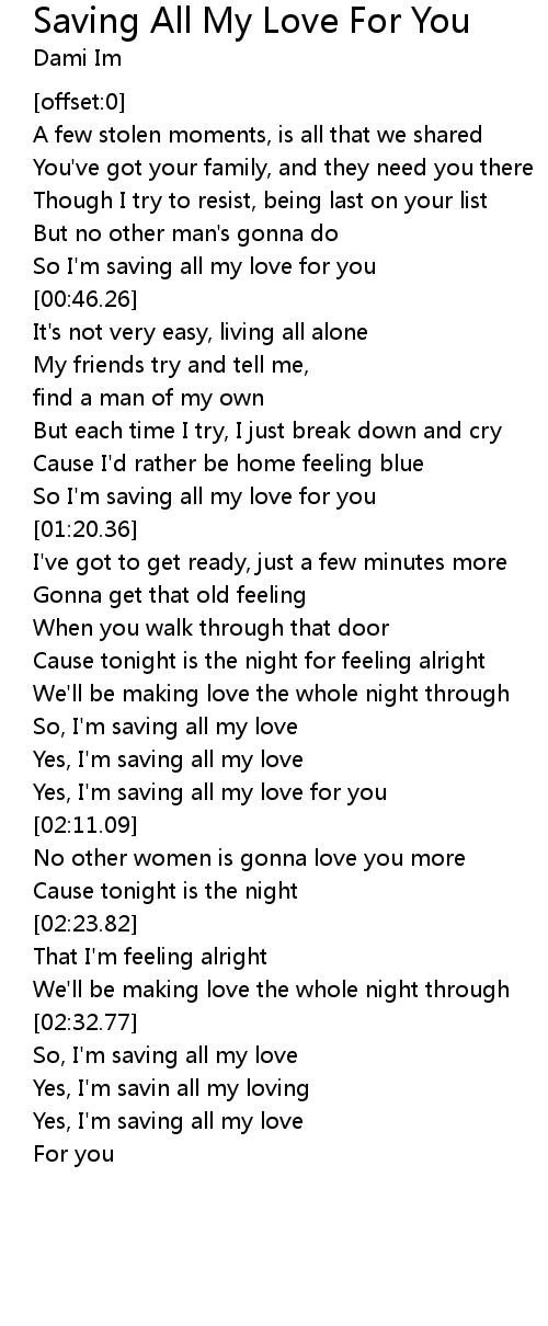 | [01:15.94] | So I'm saving all my love for you |