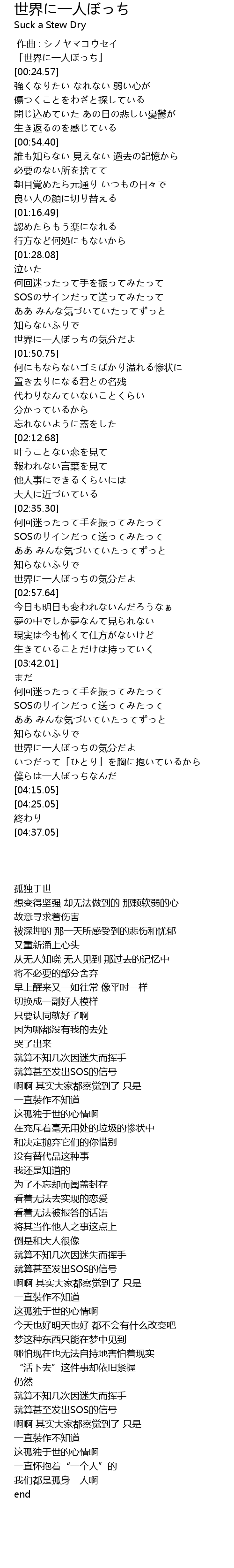 | [00:00.57] | 「世界に一人ぼっち」 |