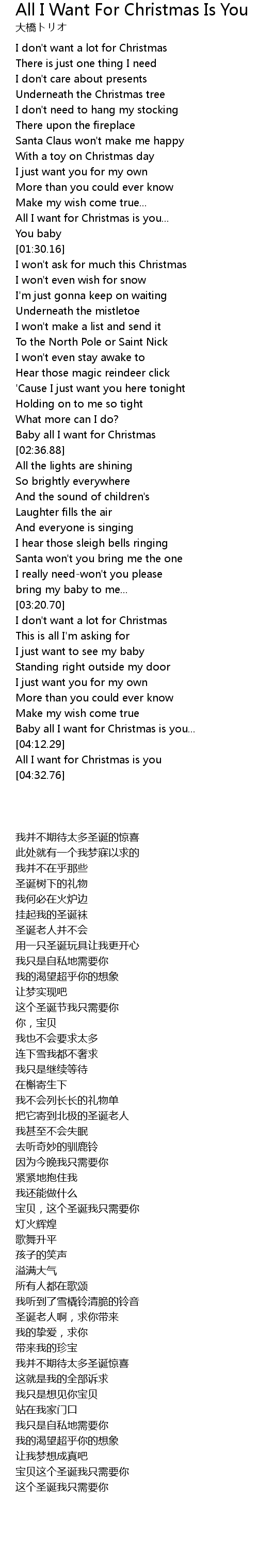 | [03:58.88] | Baby all I want for Christmas is you... |