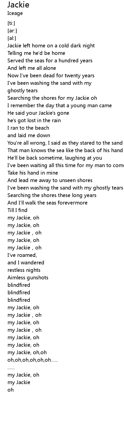| [00:44.44] | Searching the shores for my Jackie oh |