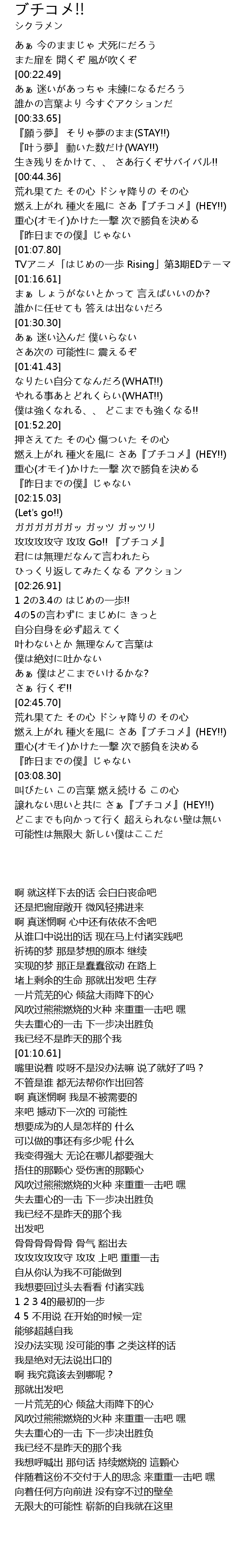 | [02:19.26] | 攻攻攻攻守 攻攻 Go!! 『ブチコメ』 |