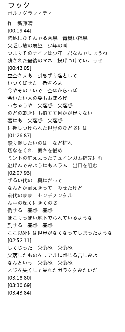 | [03:06.17] | なんという 欠落感 欠落感 |