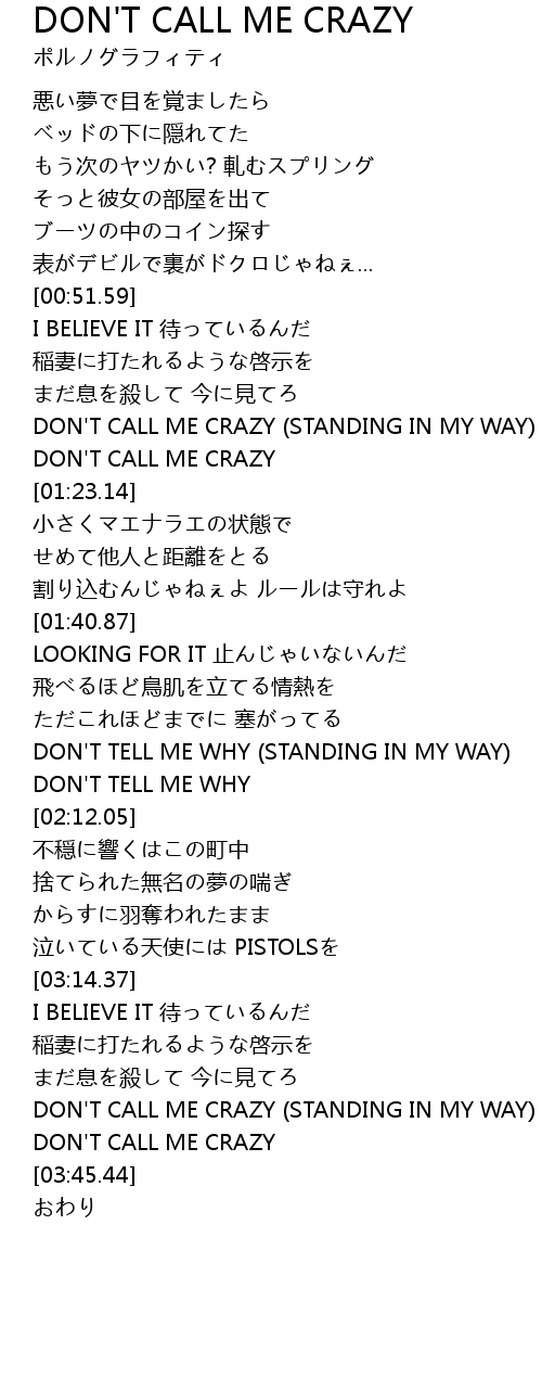 | [03:42.88] | DON'T CALL ME CRAZY |