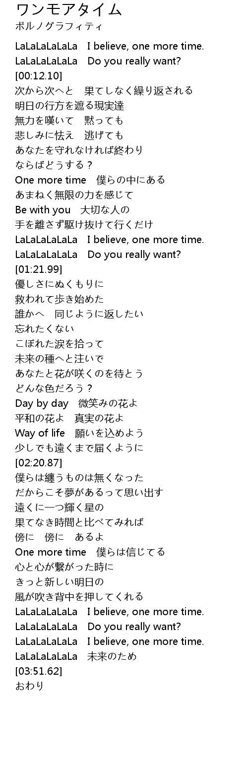 | [00:00.76] | LaLaLaLaLaLa I believe, one more time. |