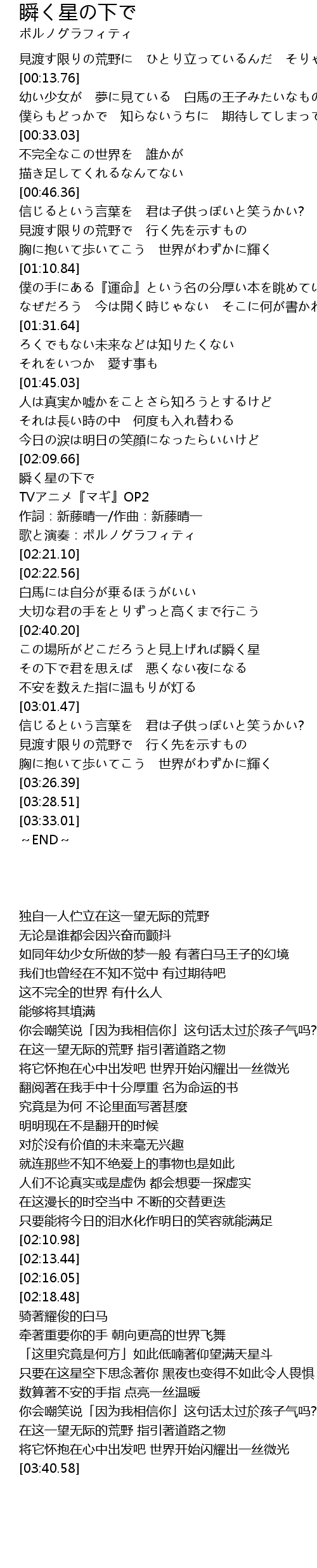 | [02:41.20] | この場所がどこだろうと見上げれば瞬く星 |