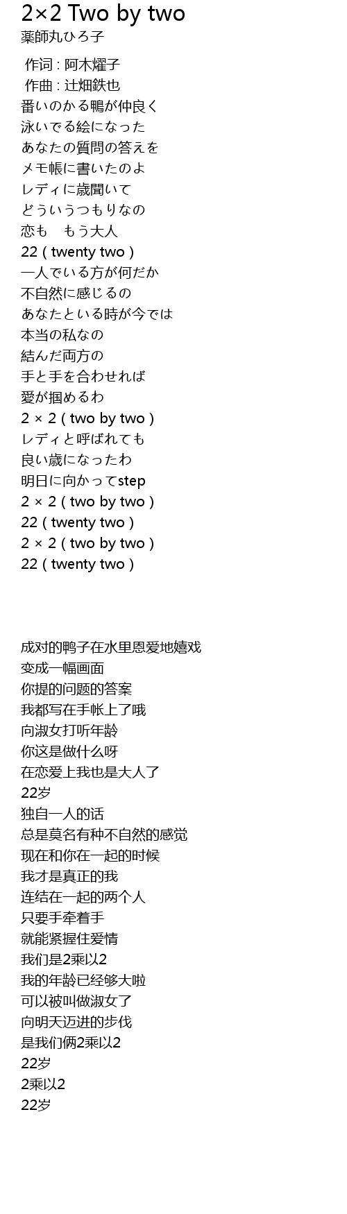 2 2 Two by two Lyrics