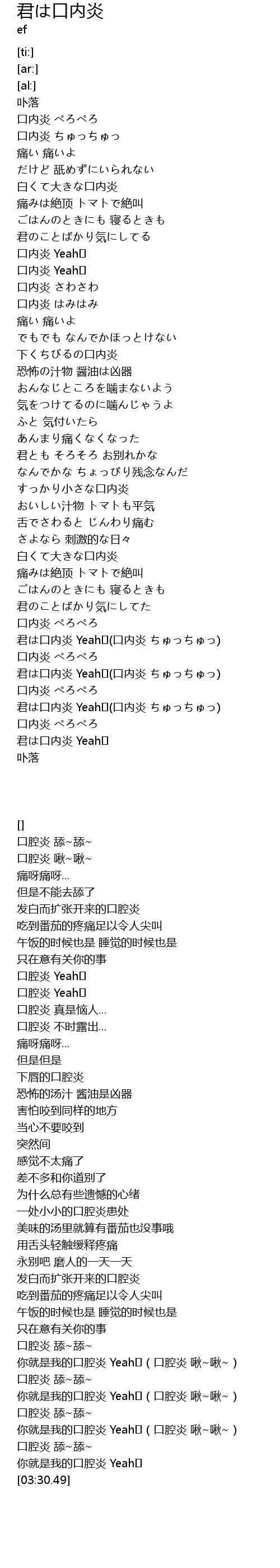 | [03:30.48] | 君は口内炎 Yeah♪ |