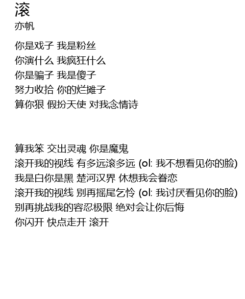 | 滚开我的视线 有多远滚多远 (ol: 我不想看见你的脸) | |