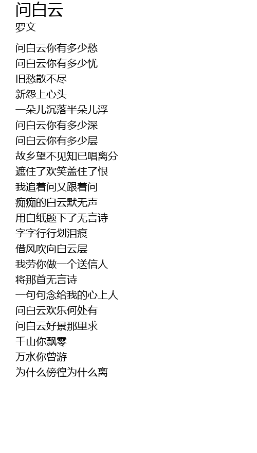 | [00:18.80] | wèn bái yún nǐ yǒu duō shǎo yōu |