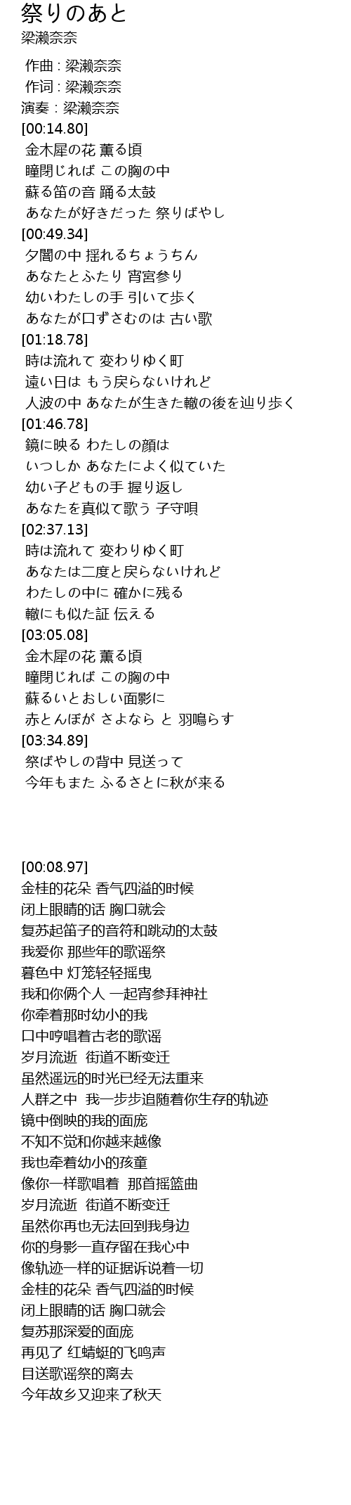 | [00:42.49] | あなたが好きだった 祭りばやし |