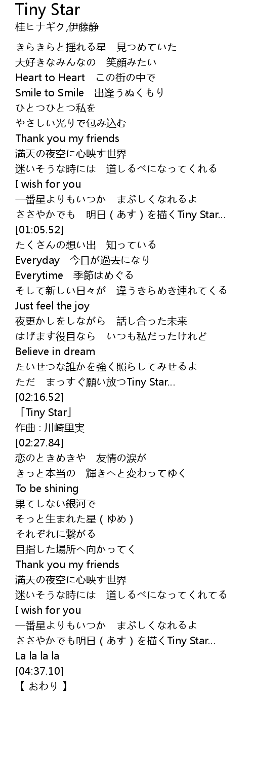 | [00:59.14] | ささやかでも 明日(あす)を描くTiny Star… |