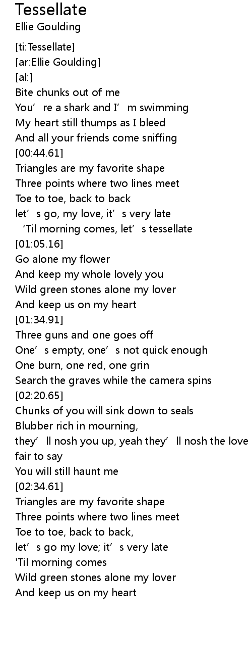 | [00:58.46] | ' Til morning comes, let' s tessellate |