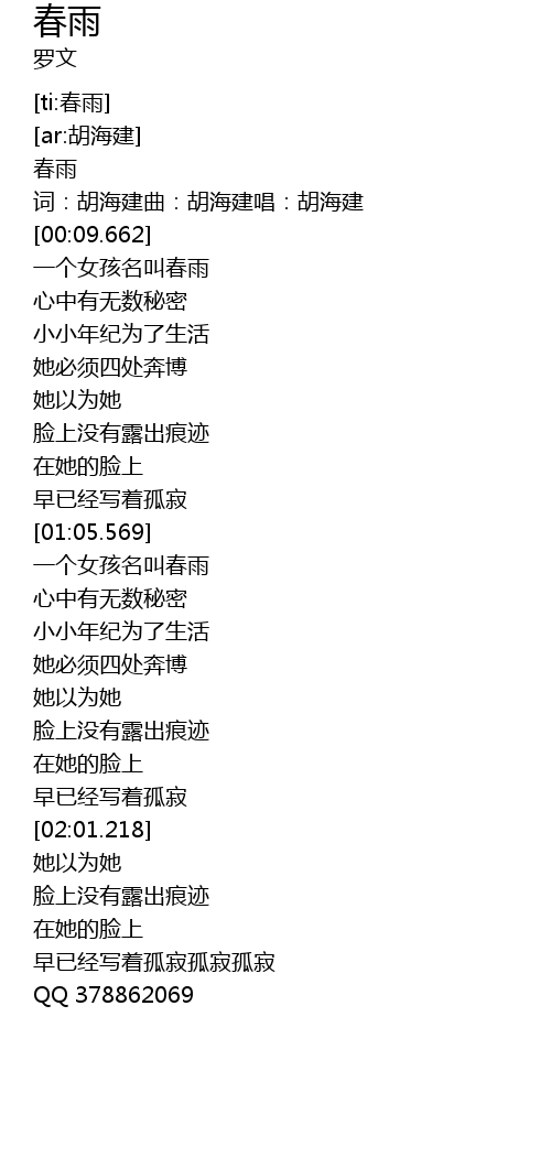 | [00:01.813] | 词:胡海建曲:胡海建唱:胡海建 |
