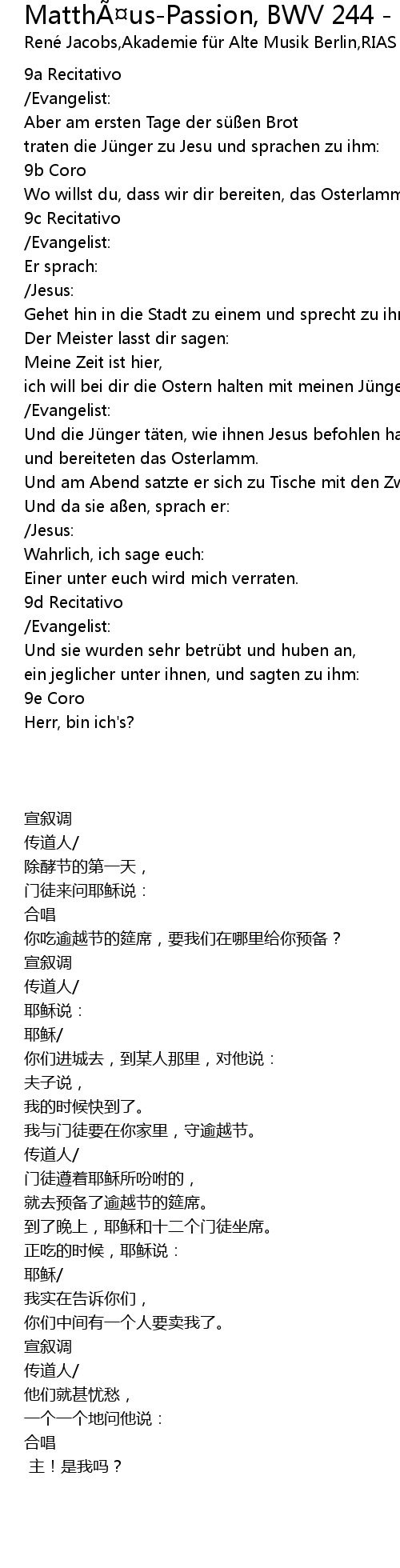 | Song | Matthäus-Passion, BWV 244 - Nr. 9 |