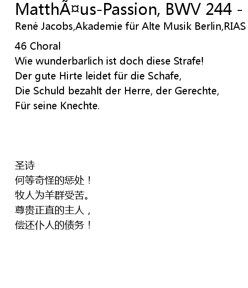 | Song | Matthäus-Passion, BWV 244 - Nr. 46 |