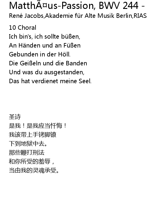 | Song | Matthäus-Passion, BWV 244 - Nr. 10 |