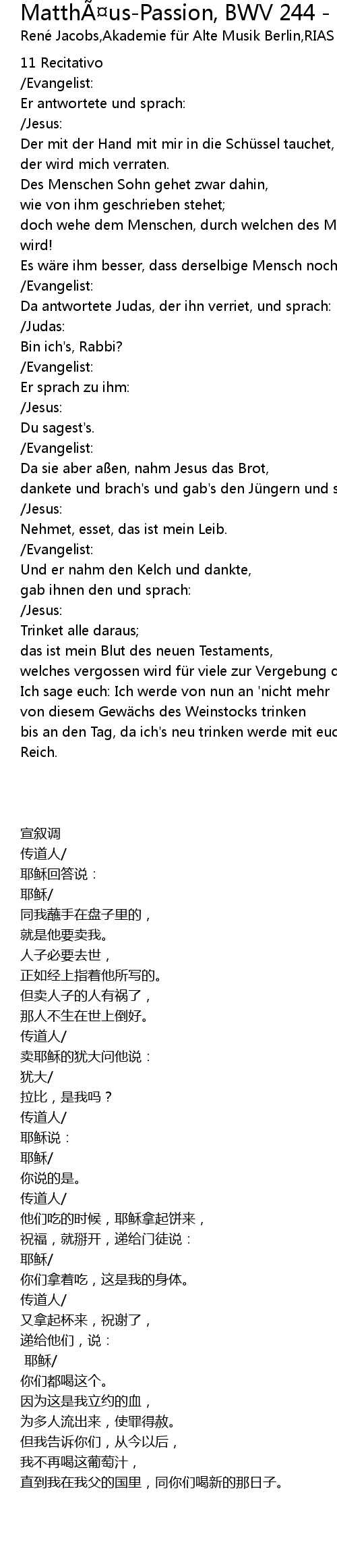 | Song | Matthäus-Passion, BWV 244 - Nr. 11 |