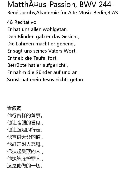 | [00:45.420] | Sonst hat mein Jesus nichts getan. |