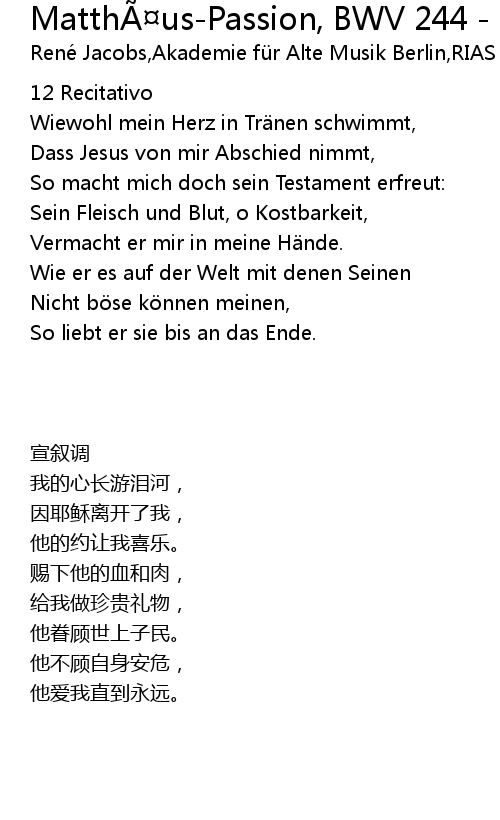 | Song | Matthäus-Passion, BWV 244 - Nr. 12 |