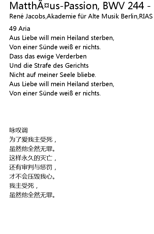 | Song | Matthäus-Passion, BWV 244 - Nr. 49 |