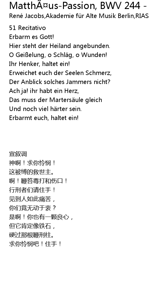 | Song | Matthäus-Passion, BWV 244 - Nr. 51 |