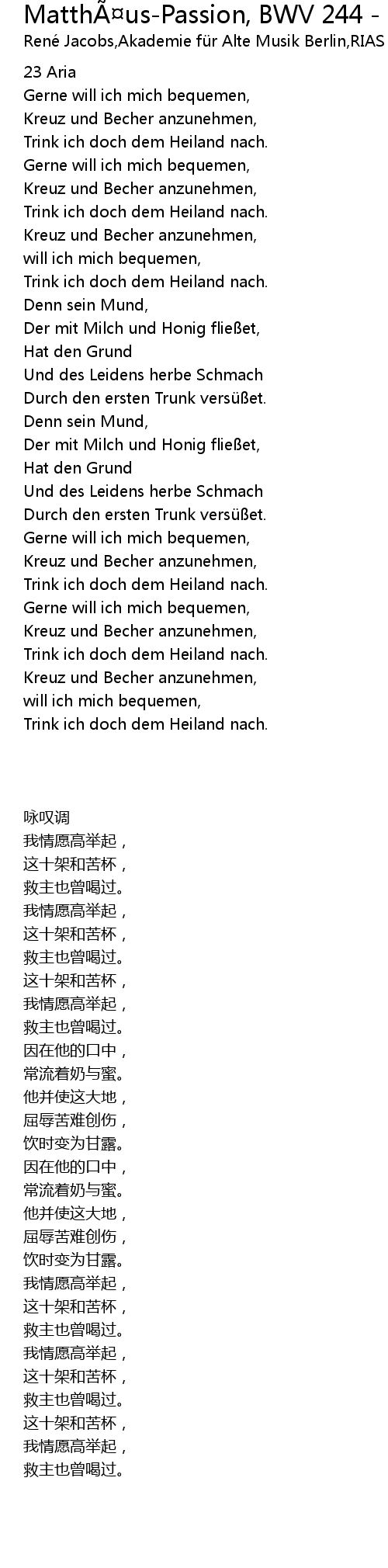 | [03:35.418] | Trink ich doch dem Heiland nach. |