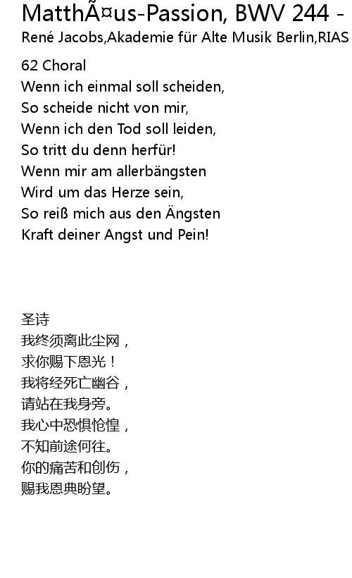 | Song | Matthäus-Passion, BWV 244 - Nr. 62 |